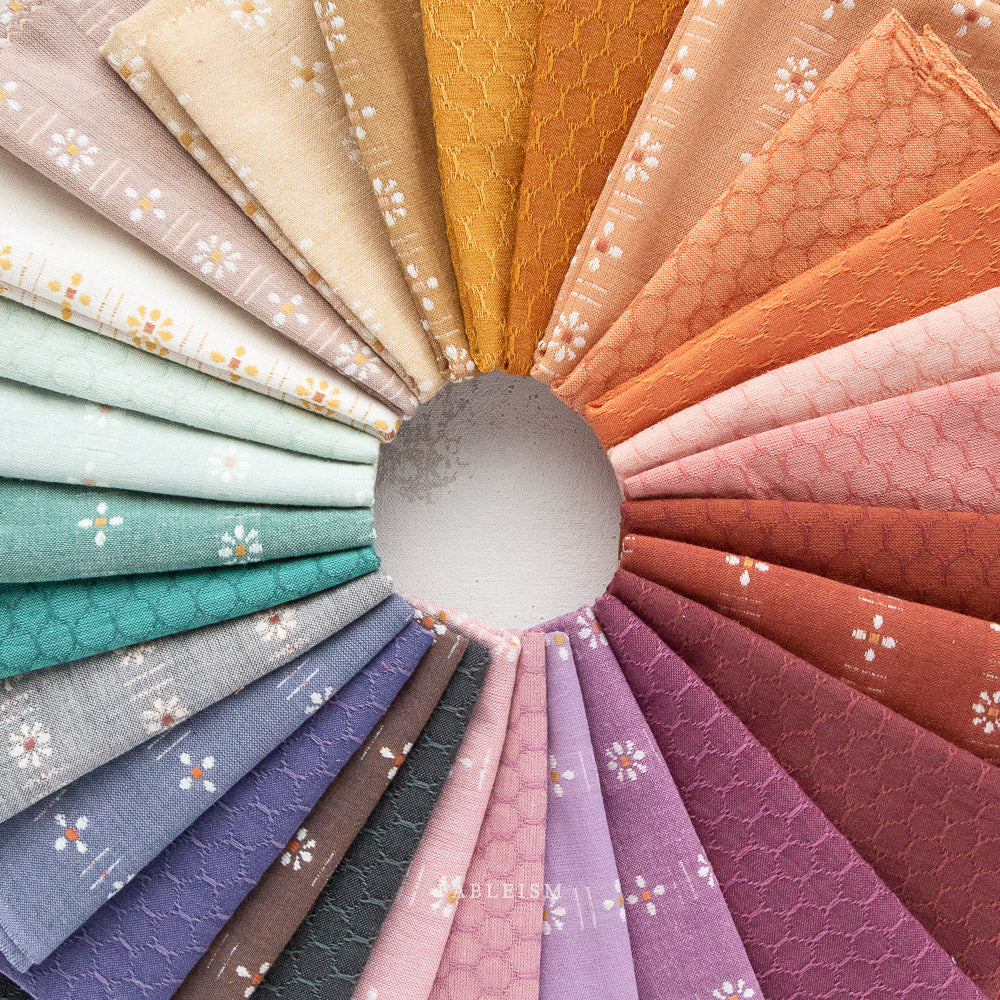 Fableism's Forest Forage collection features new Daisies and Honeycomb wovens, which are playful new basics that are perfect for quilts and apparel alike. Available in their signature earthy color palette with newly added colors for a beautiful bouquet of color.